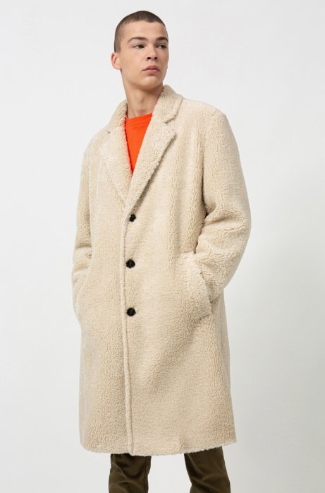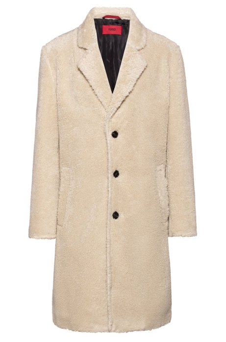 Hugo Relaxed Fit Teddy Coat With Logo Lining