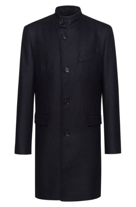 Hugo Stand Collar Coat In A Wool Blend With Cashmere